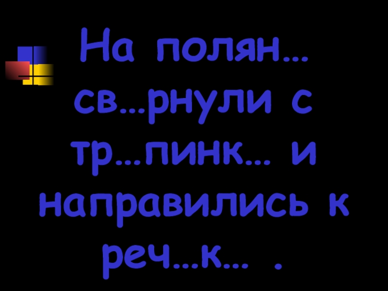 Слайд 7На полян… св…рнули с тр…пинк… и направились к реч…к… .