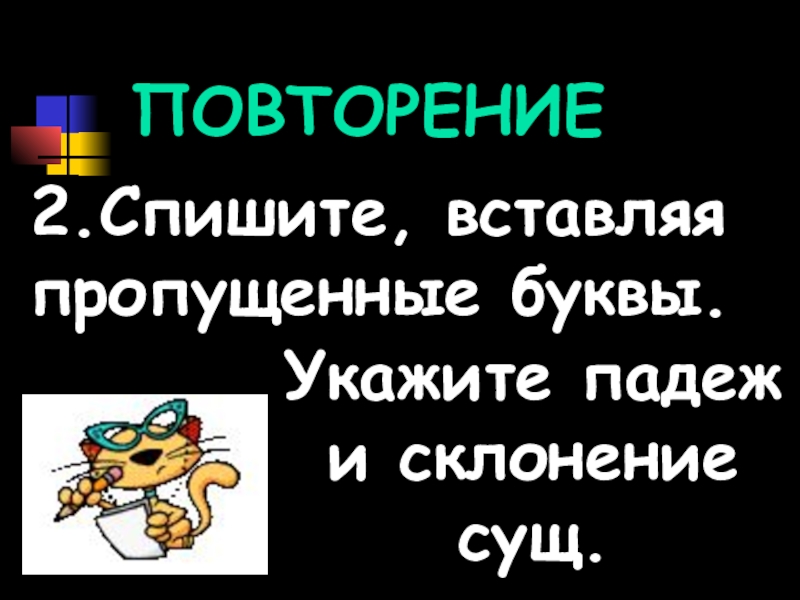 ПОВТОРЕНИЕ2.Спишите, вставляя пропущенные буквы.Укажите падеж и склонение сущ.