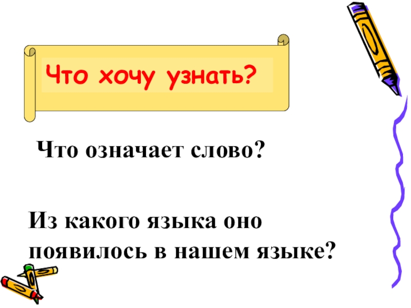 Что хочу узнать?Что означает слово?Из какого языка оно появилось в нашем языке?