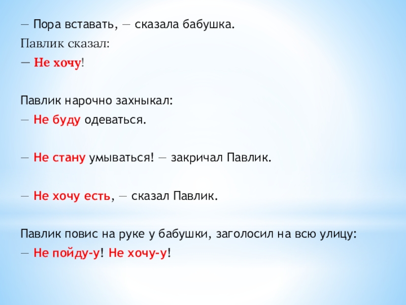 — Не хочу есть, — сказал Павлик.
