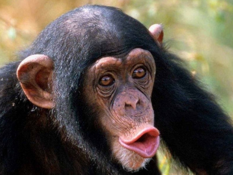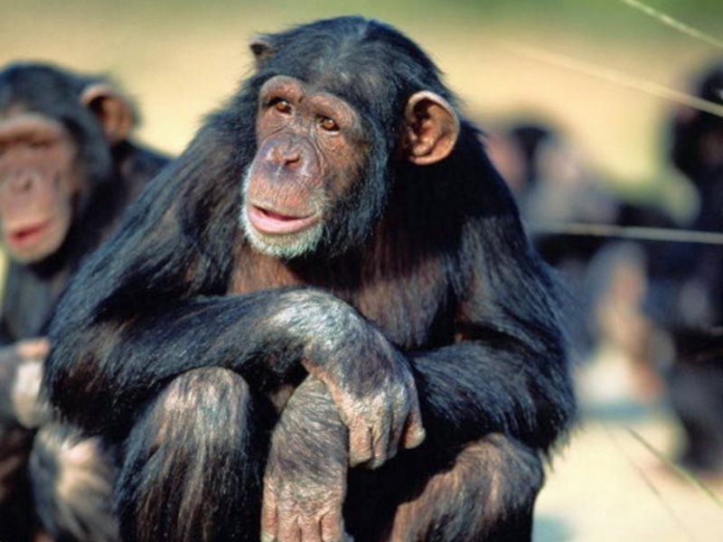 Перед ливнем самцы обыкновенного шимпанзе исполняют „танец дождя". Шимпанзе - это единственные среди всех млекопитающих (кроме человека), которые узнают себя в зеркале.