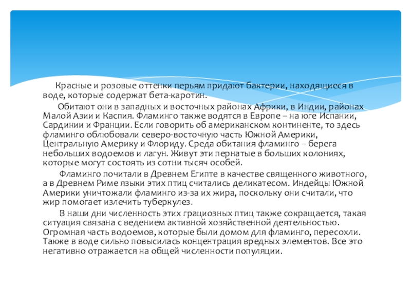 Слайд 24 Красные и розовые оттенки перьям придают бактерии, находящиеся