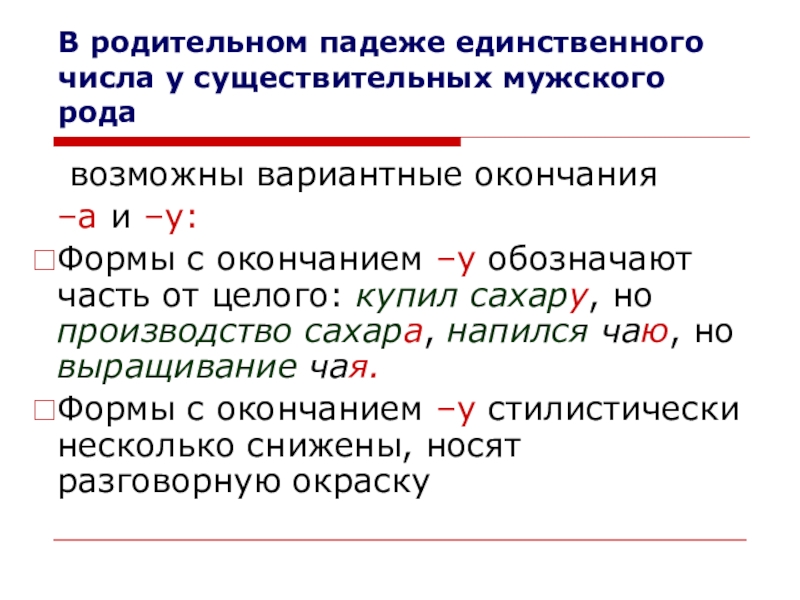 Слайд 19В родительном падеже единственного числа у существительных мужского рода