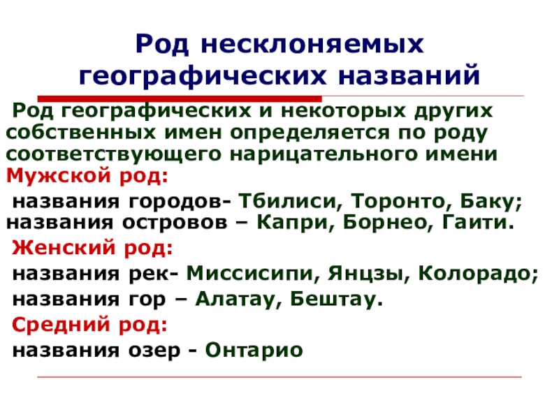 названия городов- Тбилиси, Торонто, Баку; названия островов – Капри, Борнео, Гаити.