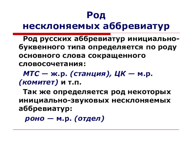 Так же определяется род некоторых инициально-звуковых несклоняемых аббревиатур: