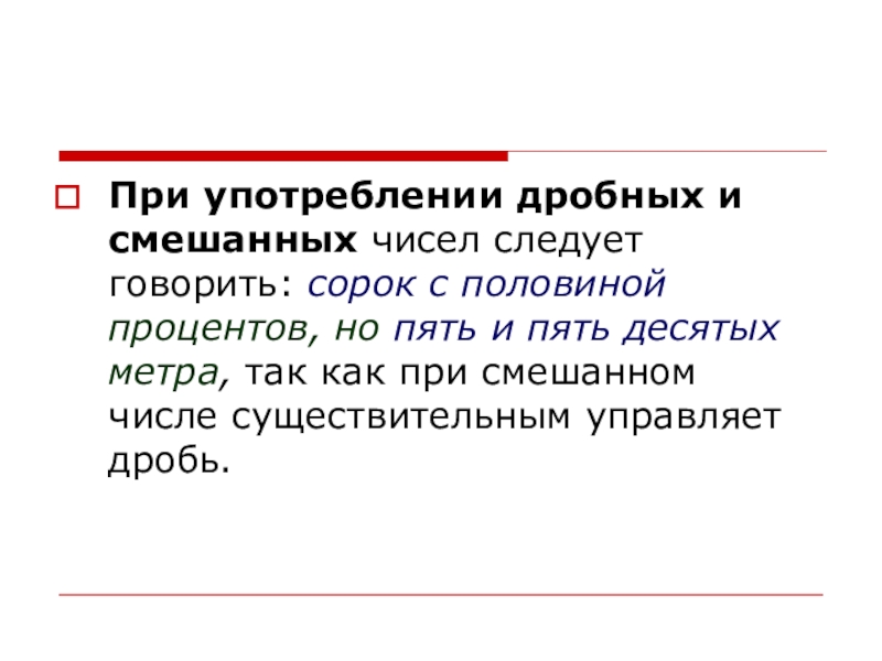 При употреблении дробных и смешанных чисел следует говорить: сорок с половиной