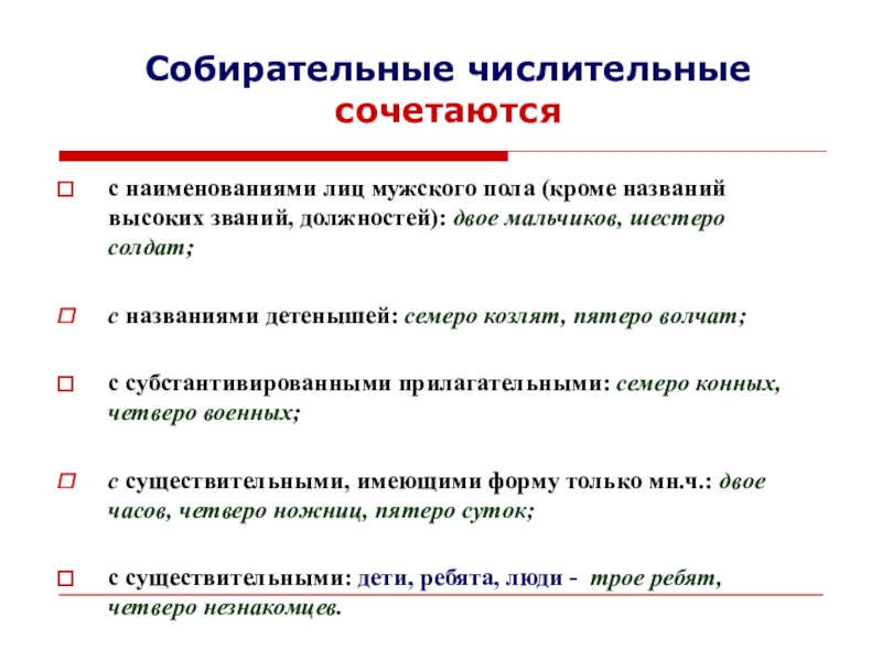 При образовании словосочетаний «числительное + существительное во мн.ч.» используются собирательные
