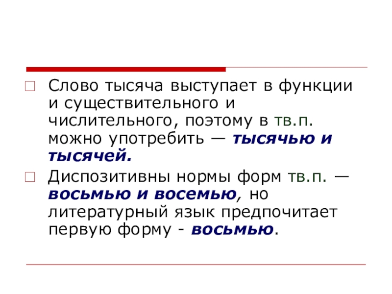 Слово тысяча выступает в функции и существительного и числительного, поэтому в