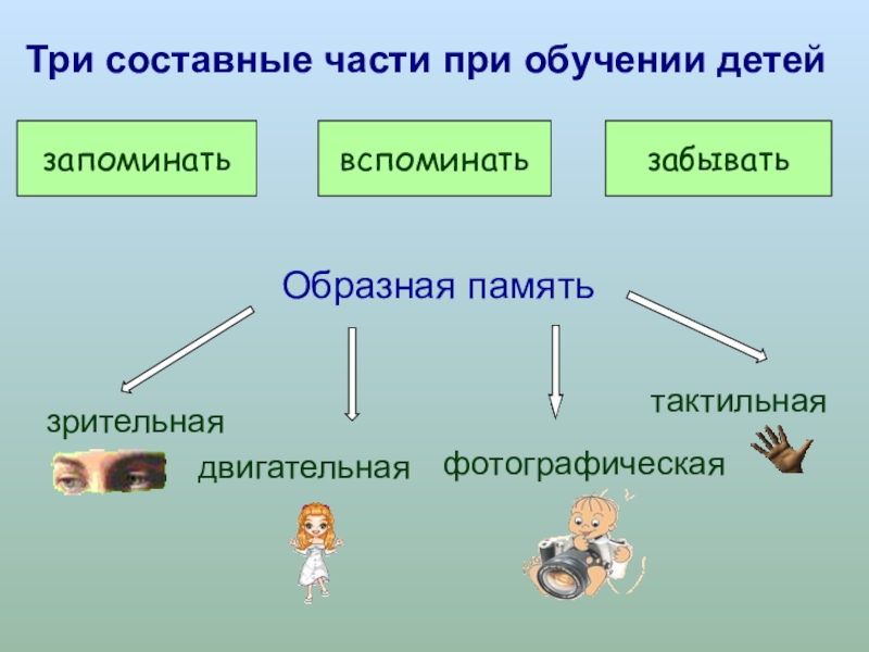 феноменом человеческого мозга, как умение видеть предмет, который уже исчез из поля восприятия. Сознание ученика сохраняет не только контуры предметов, но и цвета, запахи, вкусовые ощущения.