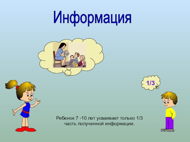 Ребенок 7 -10 лет усваивает только 1/3 часть полученной информации.