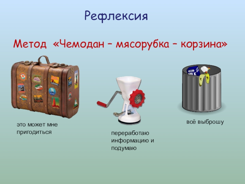 Слайд 37Метод «Чемодан – мясорубка – корзина»