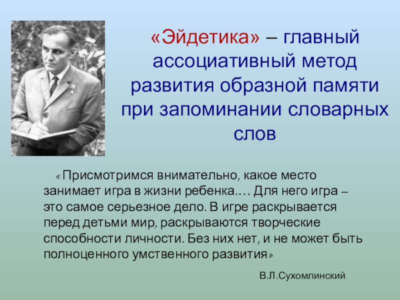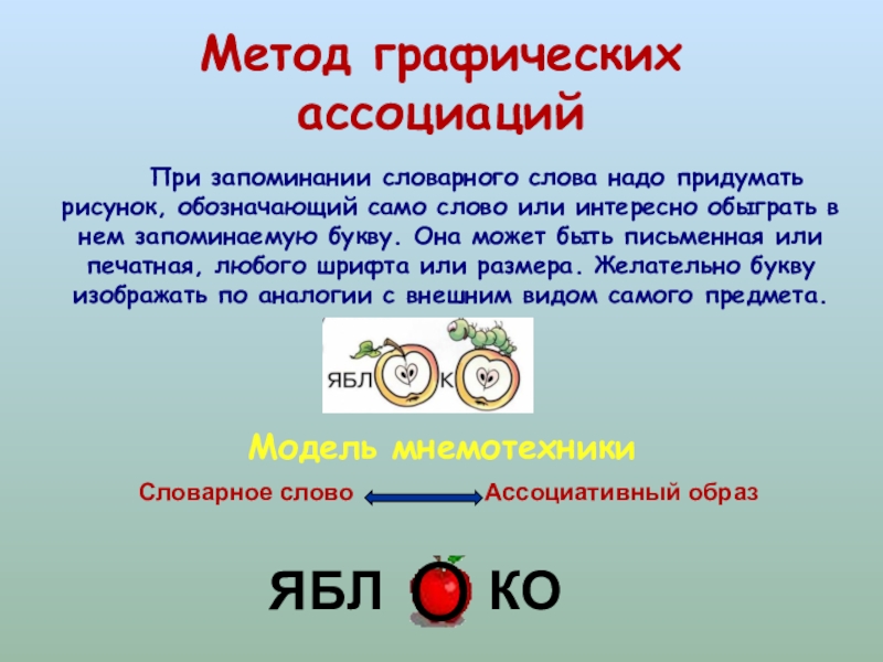 Слайд 8«Эйдетика» – главный ассоциативный метод развития образной памяти при запоминании словарных