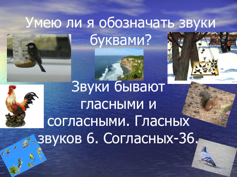 Умею ли я обозначать звуки буквами?Звуки бывают гласными и согласными. Гласных звуков 6. Согласных-36.