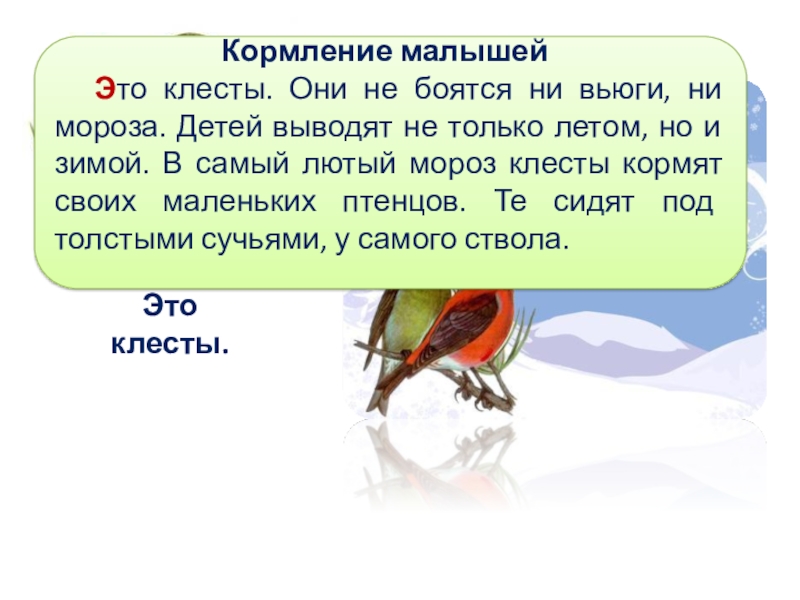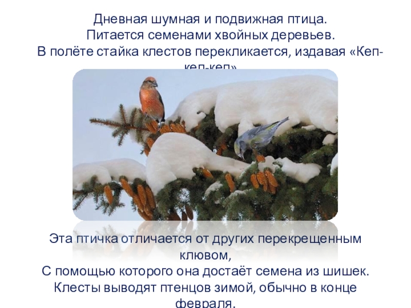 Клесты выводят птенцов зимой, обычно в конце февраля.