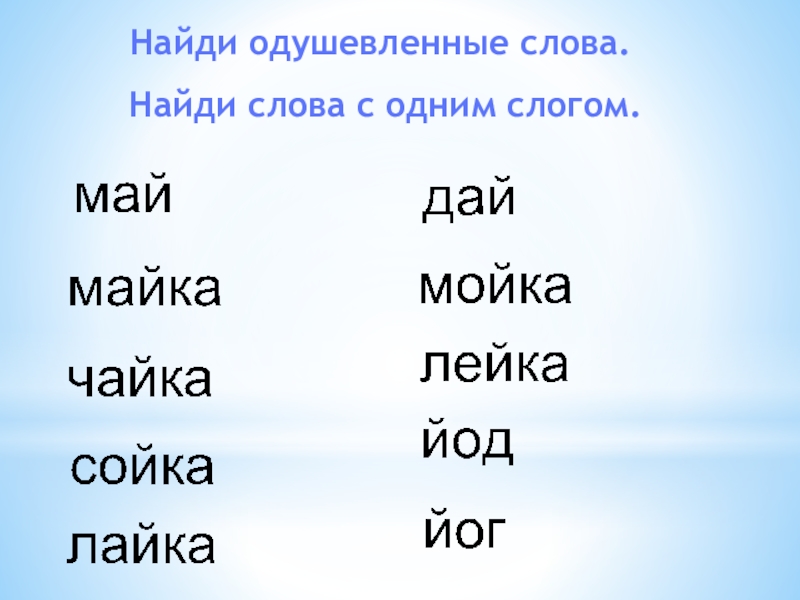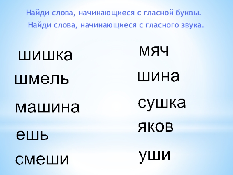 Найди слова, начинающиеся с гласной буквы.Найди слова, начинающиеся с гласного звука.