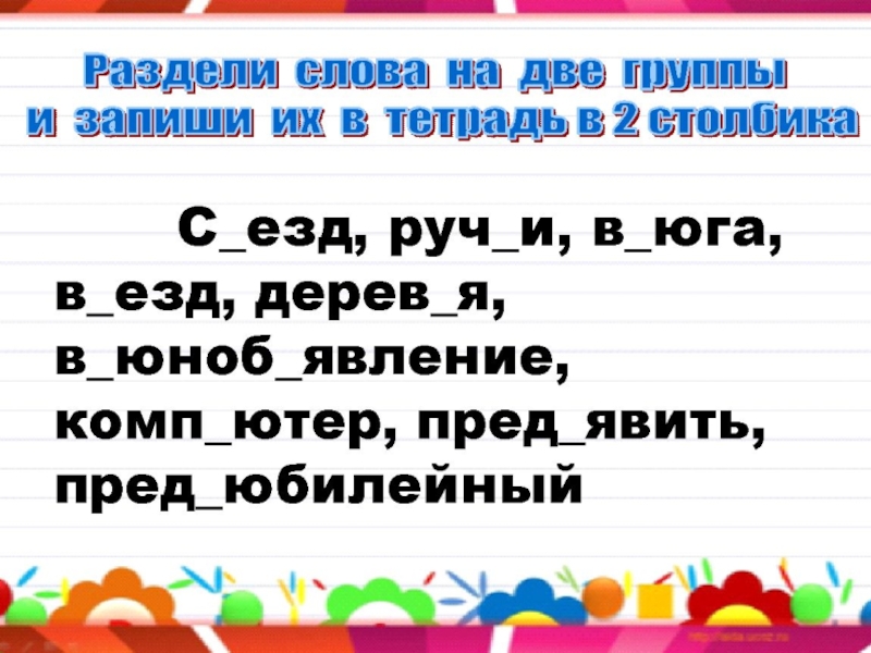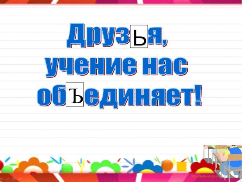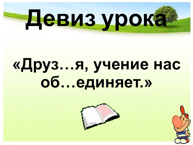 Девиз урока«Друз…я, учение нас об…единяет.»