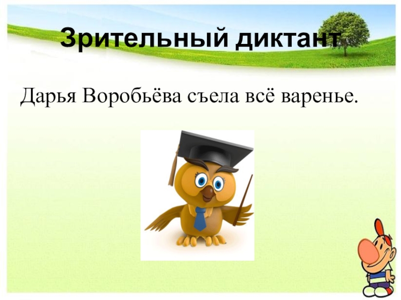 Зрительный диктант Дарья Воробьёва съела всё варенье.