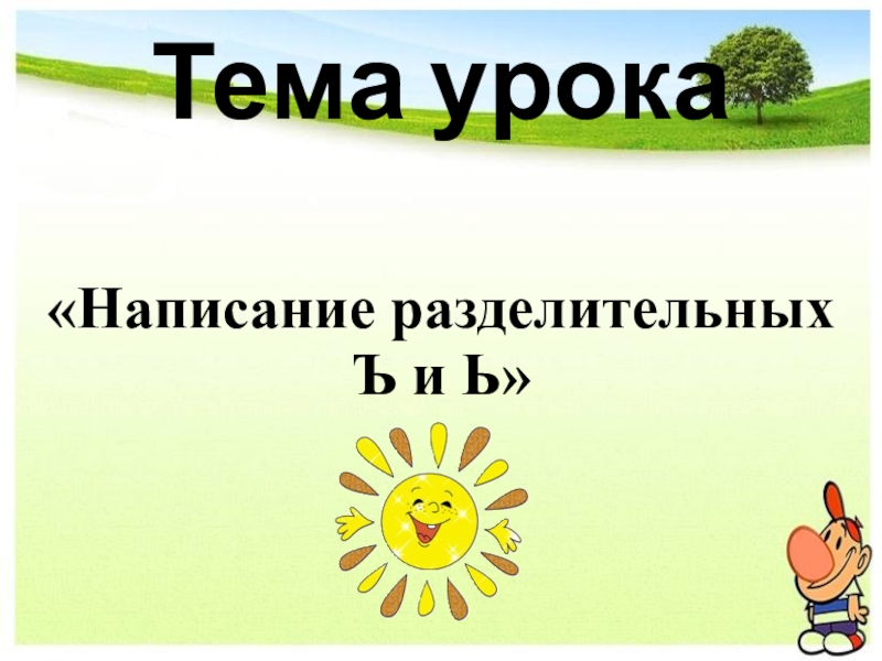 Презентация, доклад по русскому языку (обучение письму) на тему Написание слов с разделительными ъ и ь (1 класс)