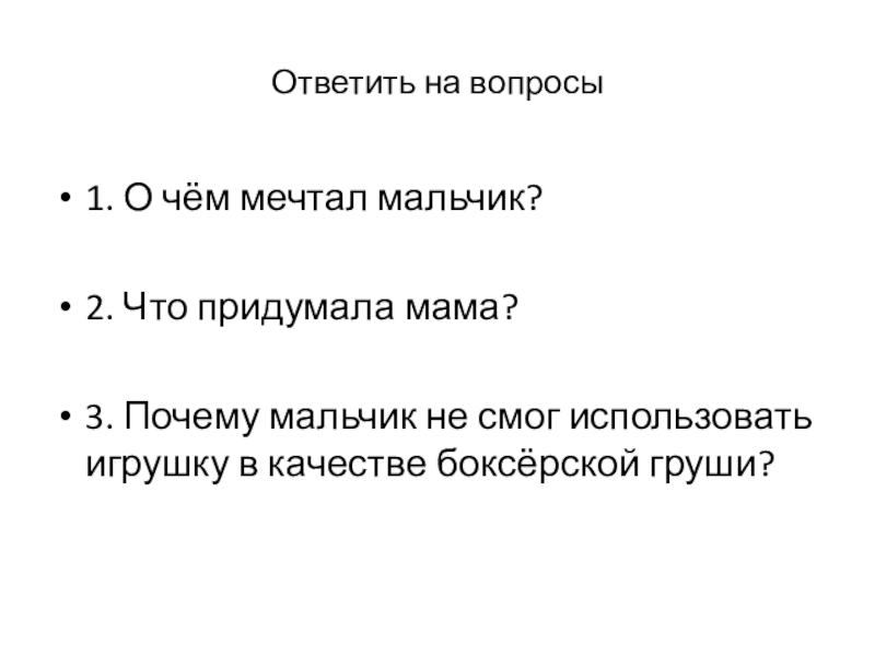 боксёром. Я попросил родителей купить мне боксёрскую грушу. Но папа даже слушать меня не захотел. Мама увидела, что я расстроился, и придумала вот что.