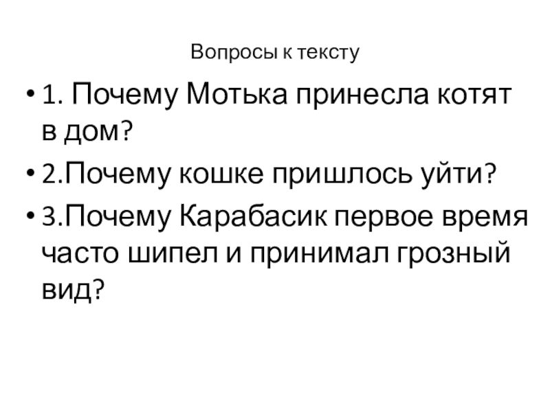 1. Почему Мотька принесла котят в дом?