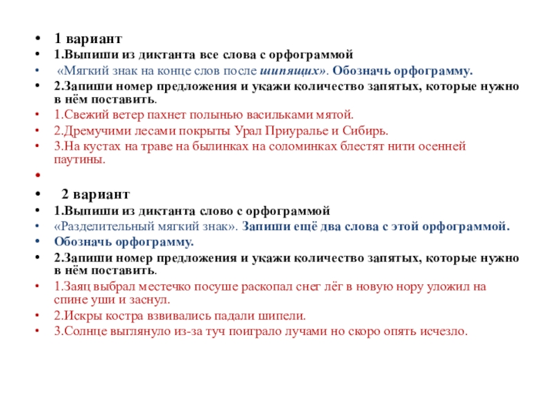 1.Выпиши из текста диктанта три слова