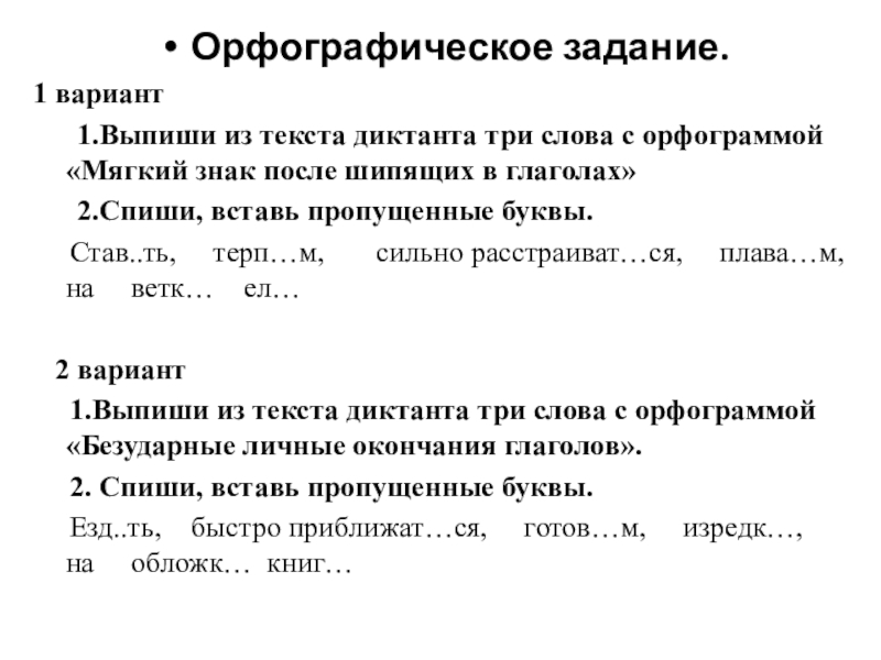 1.Выпиши из текста диктанта три слова с орфограммой «Безударные личные окончания глаголов».