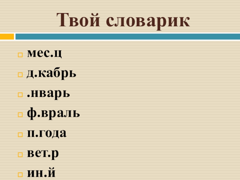 Твой словарикмес.цд.кабрь.нварьф.вральп.годавет.рин.ймесяцдекабрьянварьфевральпогодаветериней