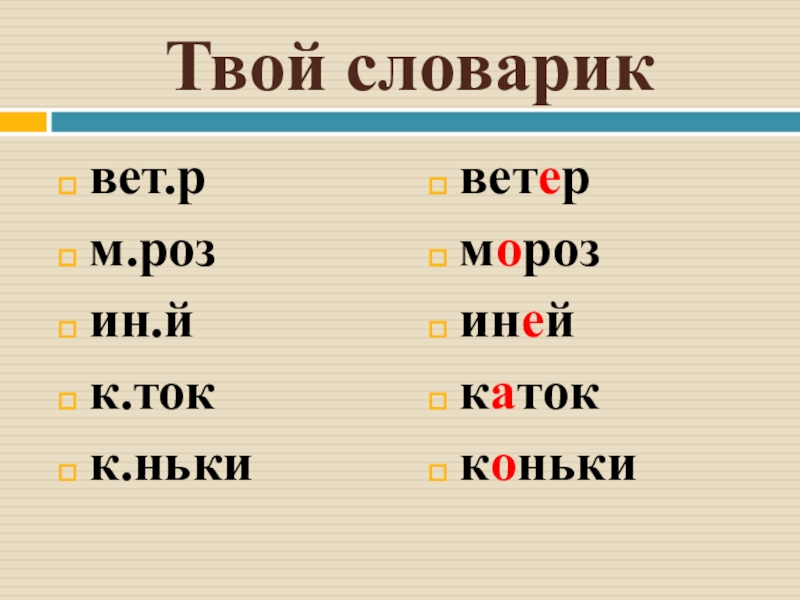 Твой словариквет.рм.розин.йк.токк.нькиветерморозинейкатокконьки