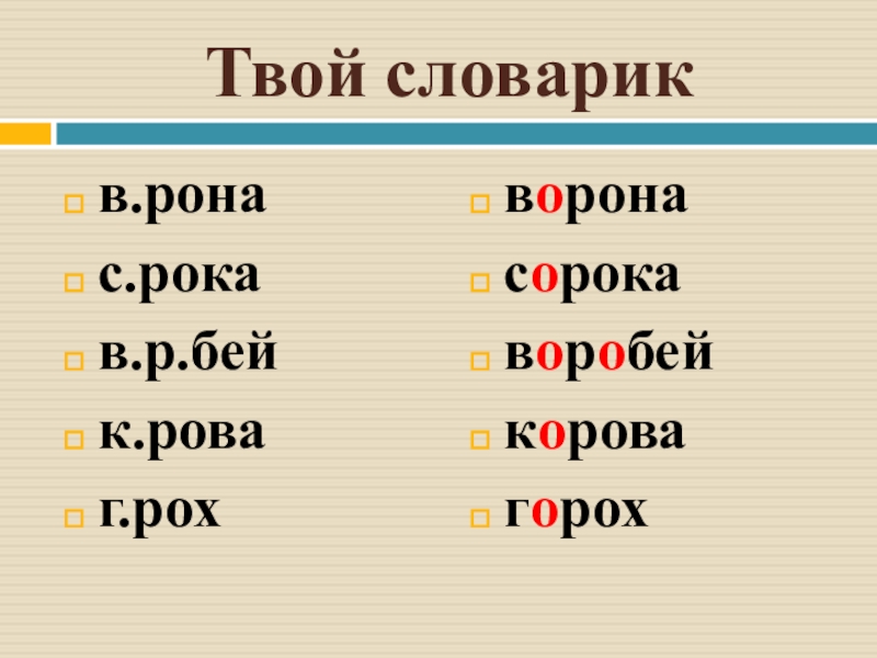 Твой словарикв.ронас.рокав.р.бейк.роваг.рохворонасорокаворобейкоровагорох