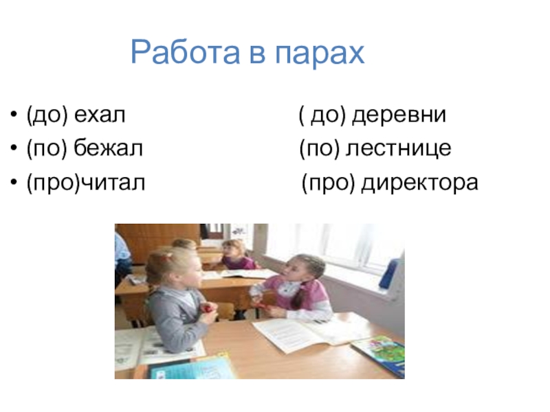 (За) горой, (по) горе,  (под сосной, подписать,  (на)сосне, застучать, подружить, научить.