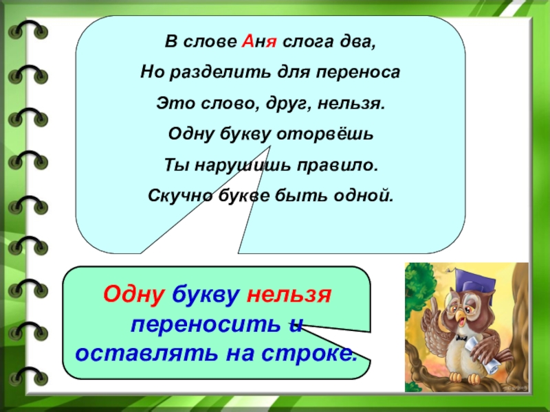 Одну букву нельзя переносить и оставлять на строке.