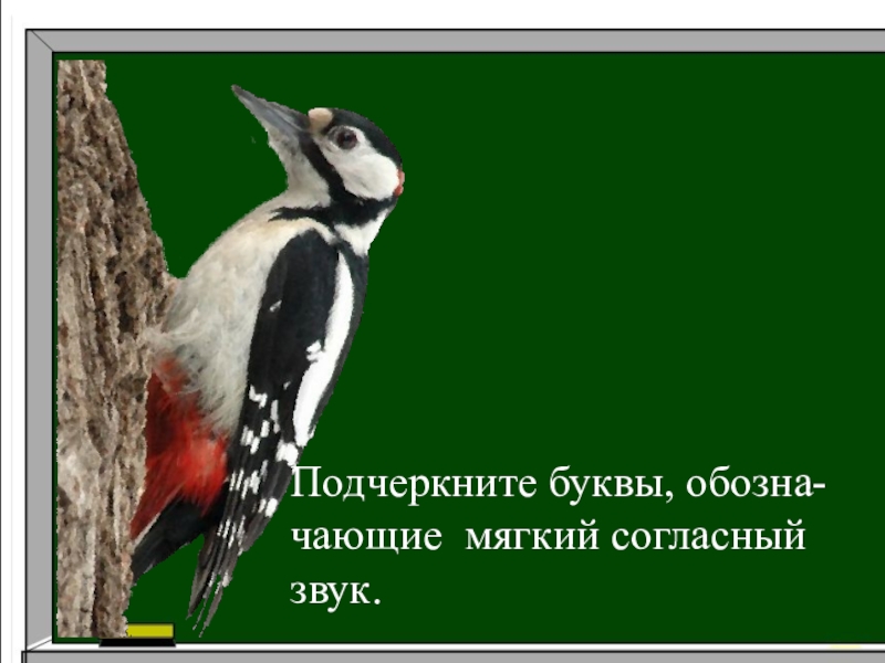 Слайд 7Подчеркните буквы, обозна-чающие мягкий согласный звук.
