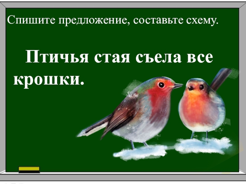 Птичья стая съела все крошки.Спишите предложение, составьте схему.