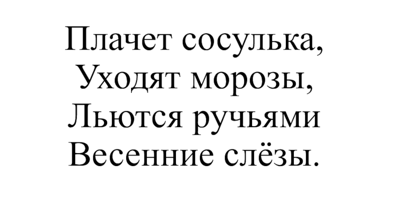 Плачет сосулька,Уходят морозы,Льются ручьямиВесенние слёзы.