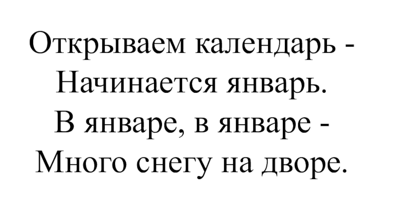 Открываем календарь -Начинается январь.В январе, в январе -Много снегу на дворе.