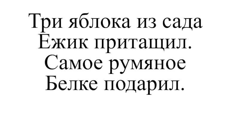 Три яблока из садаЕжик притащил.Самое румяноеБелке подарил.