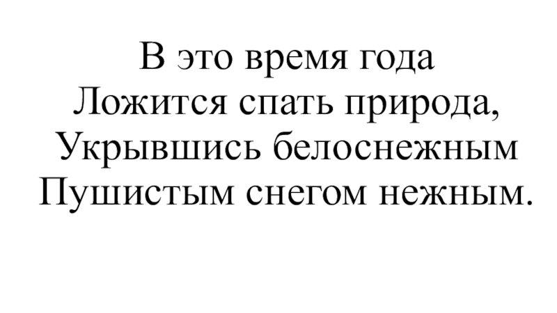 В это время года  Ложится спать природа, Укрывшись белоснежным Пушистым снегом нежным.