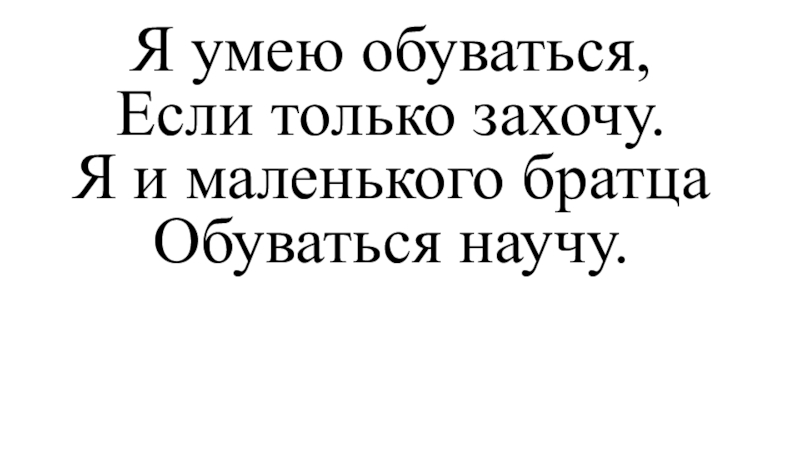 Я умею обуваться,Если только захочу.Я и маленького братцаОбуваться научу.