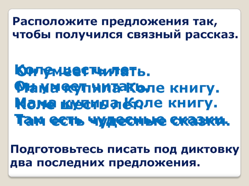Подготовьтесь писать под диктовку два последних предложения.