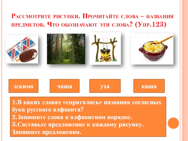 3.Составьте предложение к каждому рисунку. Запишите предложения.