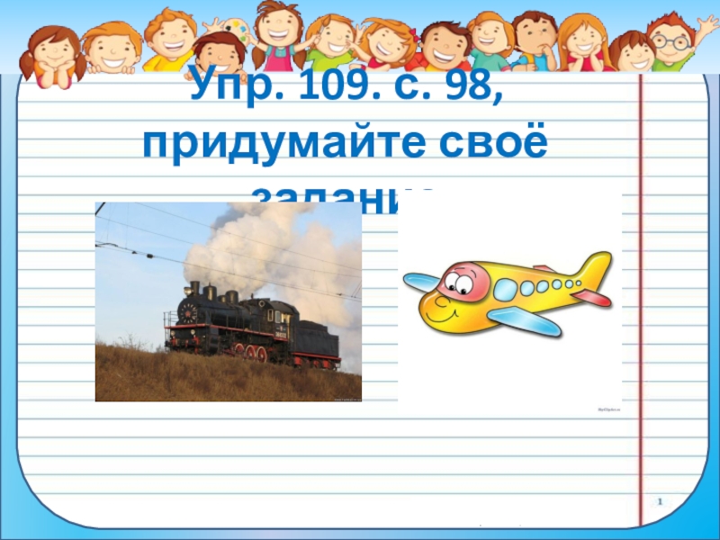 Слайд 32Упр. 109. с. 98, придумайте своё задание