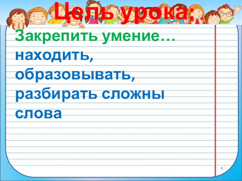Цель урока: Закрепить умение… находить, образовывать, разбирать сложны слова