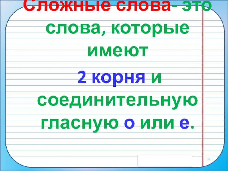 Сложные слова- это слова, которые имеют 2 корня и соединительную гласную о или е.