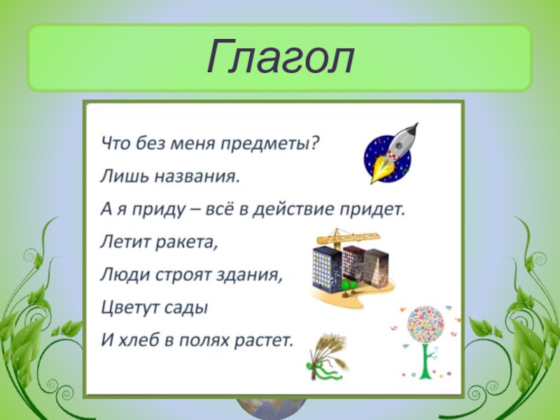 Презентация, доклад по русскому языку по теме Глагол 3 класс