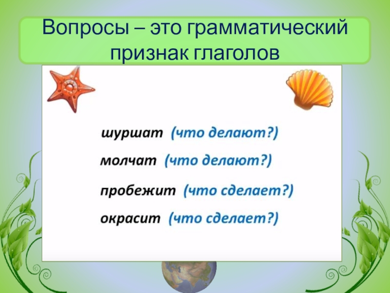 Слайд 17Вопросы – это грамматический признак глаголов