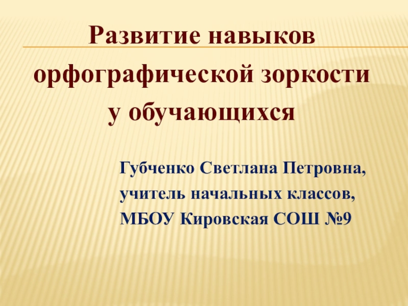 и прочного орфографического навыка на на-чальном этапе является развитие орфографической зоркости, которая заключается в умении обнаружи-вать, видеть, замечать орфограммы и классифици-ровать их на основе опознавательных признаков.
