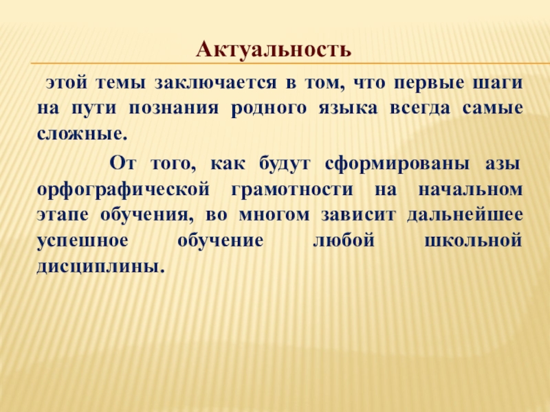 От того, как будут сформированы азы орфографической грамотности на начальном этапе обучения, во многом зависит дальнейшее успешное обучение любой школьной дисциплины.