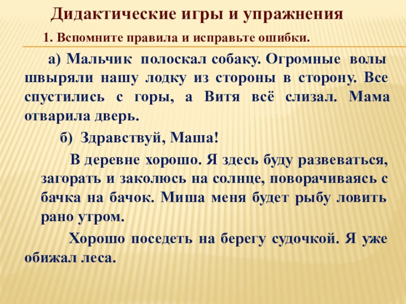 а) Мальчик полоскал собаку. Огромные волы швыряли нашу лодку из стороны в сторону. Все спустились с горы, а Витя всё слизал. Мама отварила дверь.
