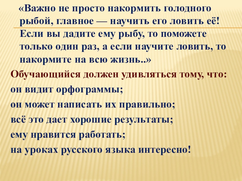 Слайд 23 «Важно не просто накормить голодного рыбой, главное — научить