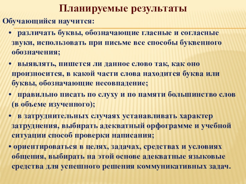 • правильно писать по слуху и по памяти большинство слов (в объеме изученного);